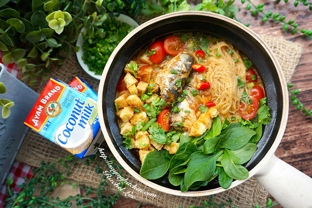 I used canned sardines and coconut milk for this easy Claypot Sardine & Bacon Vermicelli 沙丁火腿砂锅焖米粉. It's an absolutely tasty and aromatic one pot dish that's somewhat in between Satay Bee Hoon and Thai Tang Hoon. A very versatile dish that works well with either tang hoon or bee hoon. It's very easy to prepare and cook too.